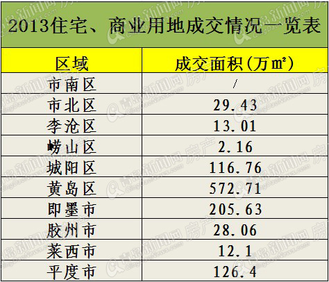 青岛的繁荣是从西部前海一线开始发展的,但城市的发展需要扩张版图来助力,于是,三面环海的岛城开始了向北、向西发展,土地市场开始“北上”与“西进”。2013年住宅、商业地块的成交情况就真实地反映出这一现象。今年一年,市南区的成交面积为零,市北、李沧、崂山三区的成交总量也不过44.5万平方米,而城阳、即墨等近郊和远郊区域,土地出让总量高达1061.76万平方米。