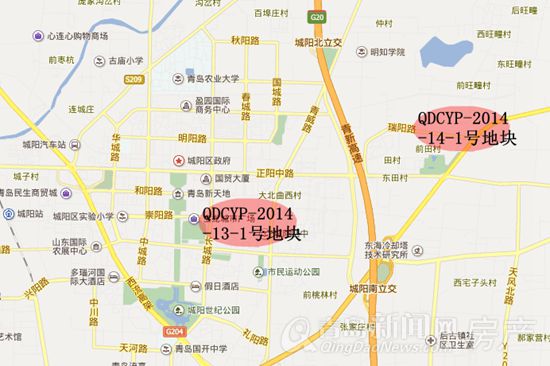 从地图上来看,两宗地块均位于城阳大北曲商圈。其中,编号QDCYP-2013-1号地块位于商圈核心位置,西侧紧邻城阳宝龙城市广场;编号QDCYP-2014-1号地块位于商圈东北侧。