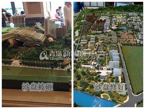 10月绿城售楼处沙盘被业主砸坏、如今换上新沙盘