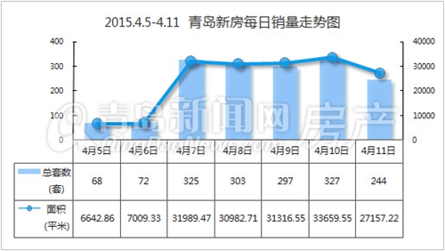 【青岛新闻网房产讯】上周青岛新房市场依然没有“逃”过清明假期市场疲软的不可抗力,成交量不十分理想。根据统计,2015年4月5日-2015年4月11日青岛市新房共成交1636套,总成交面积168757.69㎡,环比前一周下降约24%;其中新建住宅成交1520套,成交面积153409.83㎡,环比前一周下降约18%。因为清明节期间成交量较低,致使“银四”上半月市场表现非常“低调”。