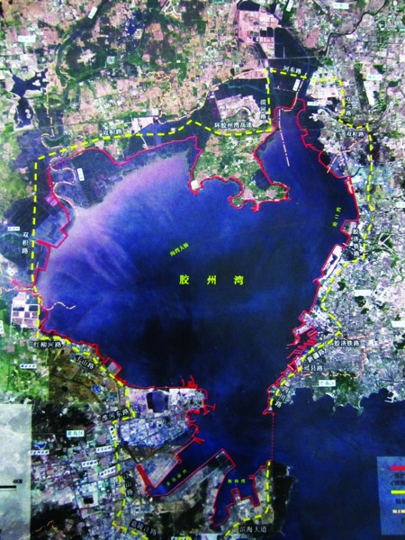 胶州湾海域为胶州湾保护控制线的围合区域。胶州湾保护控制线,是指经市人民代表大会常务委员会批准的,东起团岛湾头,沿沧口湾、红岛、河套、海西湾,西至凤凰岛脚子石的连线。