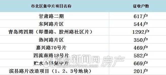 2017年市北区计划启动11个集中片及部分零星片改造项目,涉及居民1.6万户。共分两批实施,第一批计划启动甘肃路二期、东阿路片、热河路片、贮水山路片区等8个集中片及69个零星片项目,涉及居民9805户。