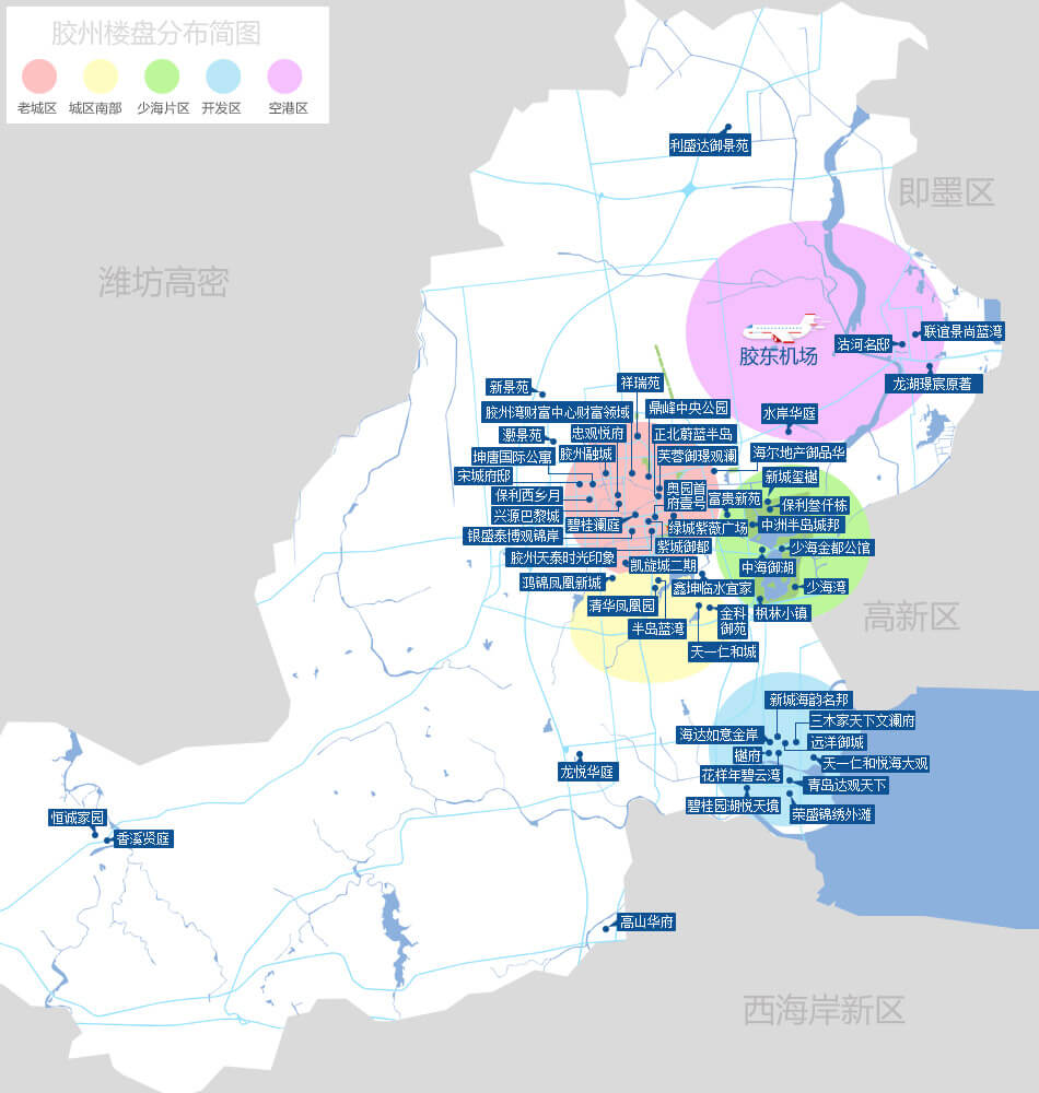 | 胶州新机场的落户是胶州腾飞的引擎,胶州新机场目前是等级最高的4F级机场,将打造全国首个集高铁、地铁于一体的零换乘综合交通中心,地铁8、12、14、16号线直通胶州,以及近几年来高端教育的不断引进大大提高了区域的配套资源。 |