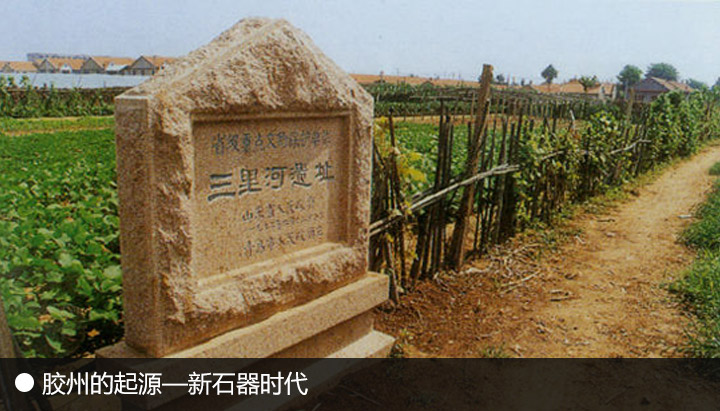 | 胶州拥有5000多年历史,境内有大汶口文化、龙山文化于一体的三里河文化遗址。三里河遗址为山东省重点文物保护单位。位于胶州市南关街道办事处北三里河村神仙沟西,面积约为5万平方米,发掘面积约1570平方米。属于新石器时代大汶口文化和龙山文化的遗址。 |
