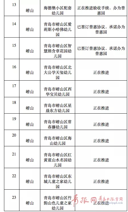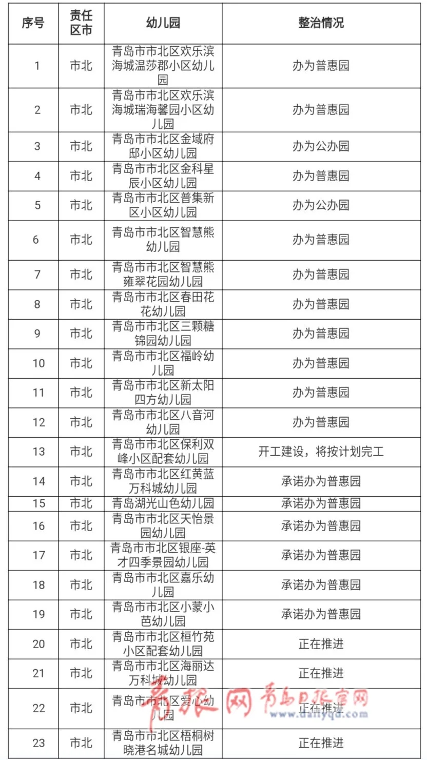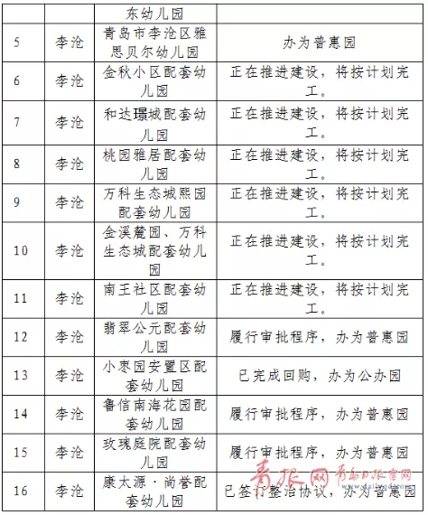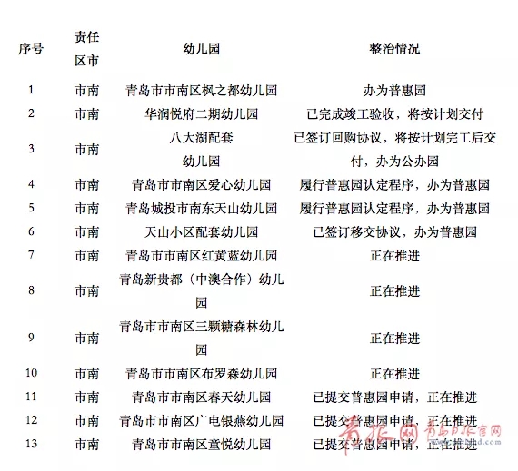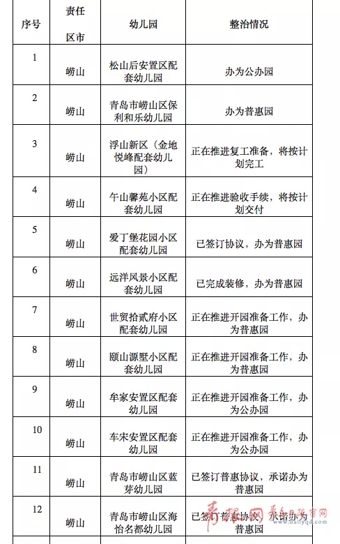 [摘要] 孩子能在家门口上幼儿园,尤其是上公办园或普惠园,是不少家长的期盼。日前,青岛市内四区公布了城镇居住区配套幼儿园排查整改情况。