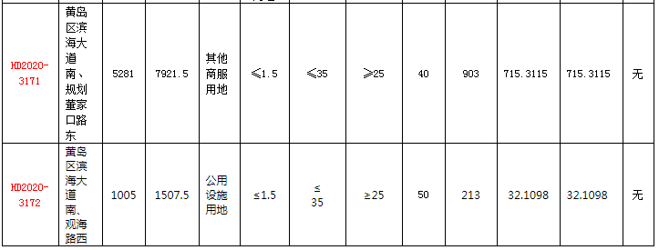 近日,青岛市黄岛区自然资源局发布土地出让公告,将于8月26日上午10时以拍卖方式出让3幅储备地块的国有建设用地使用权。3宗地块中2宗位于黄岛区滨海大道南、规划董家口路东,两宗地块用地性质分别为零售商业用地(加油站用地)、其他商服用地;另外1宗地块位于黄岛区滨海大道南、观海路西,为公用设施用地。3宗地块最高出让起始价1456元/㎡。
