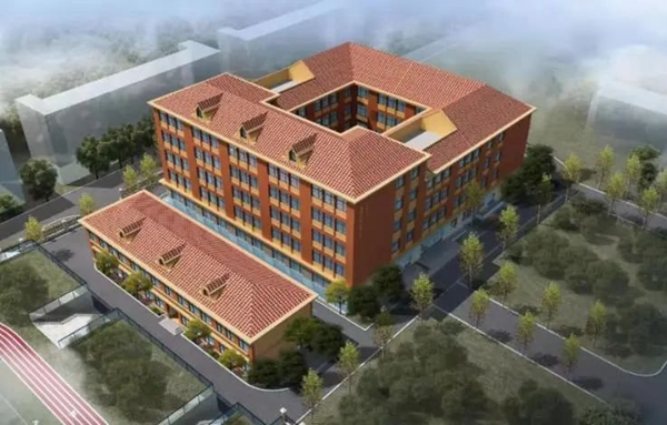 主要建筑教学楼采用回字形中国里院式设计,学校整体风格古典庄重,红墙绿树,蕴含书香,与这座创办近70年的学校历史底蕴相得益彰。