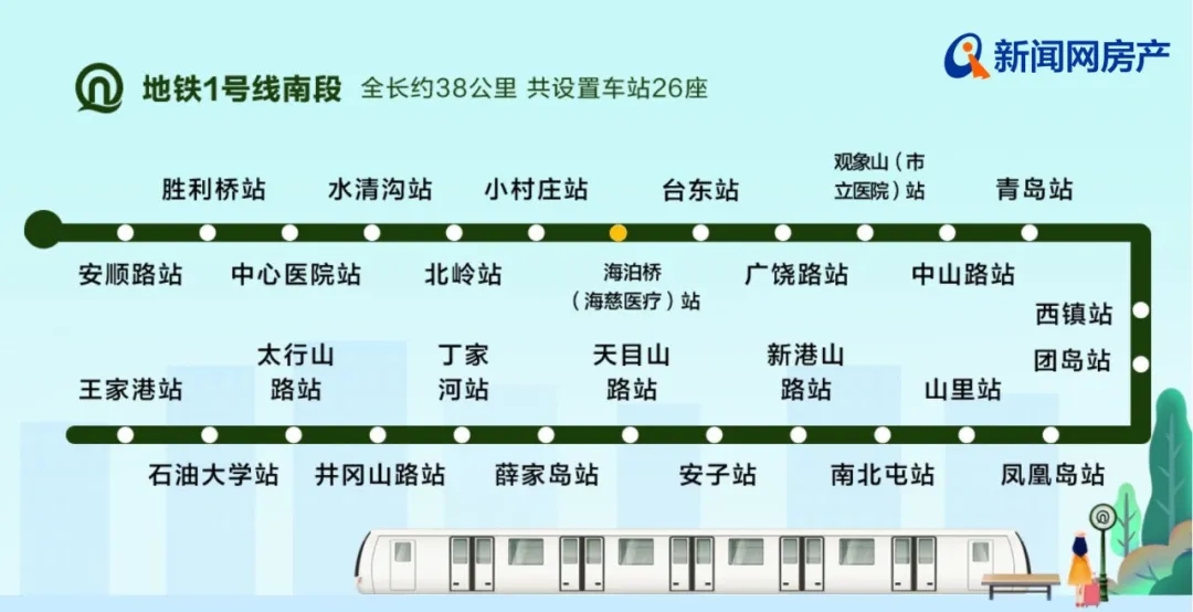 青岛地铁1号线全线开通后,将成为西海岸城区、东岸城区和北岸城区间的快速轨道交通走廊,连接西海岸中心区、青岛中心区和城阳现状城区的南北向骨干线路。