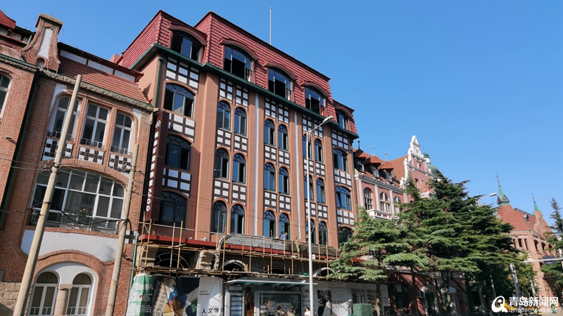 青岛新闻网8月17日讯(记者 宋波鸿)日前,位于市南历史城区广西路33号的“红房子”拆除了部分建筑围挡,外部造型正式“亮相”,红色墙体搭配绿色窗户显得欧洲风情十足。