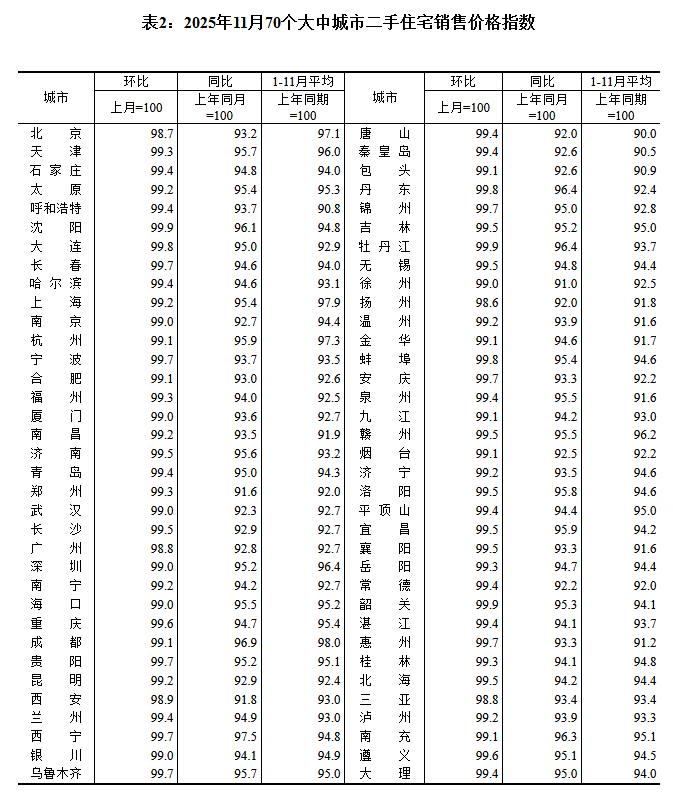 与新房不同,二手房市场仍在深度调整。国家统计局数据显示,11月份二手房价同、环比均无城市上涨,已经连续三个月出现全跌局面。