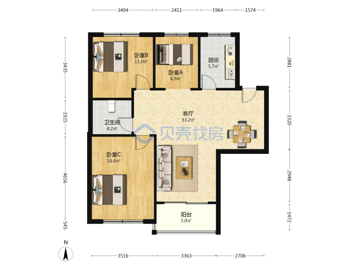青岛二手房 > 市北区 > 新岭花园三期(海信海安新居辽阳西路辽源路错埠岭二路)104.84平高楼层255万1南2北南厅套三厅