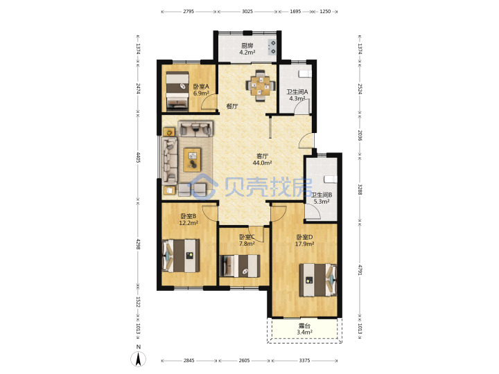 青岛二手房 > 市北区 > 城市花园一期北区(威海路南口路洮南路和兴路)123平高楼层270万三南一北西厅套四双厅双卫