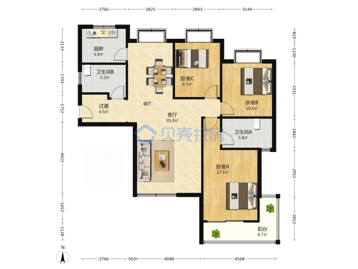 青岛二手房 > 市南区 > 双星金色海岸(贵州路瞿塘峡路明月峡路)136.2平低楼层289万1南2北南厅套三双厅双卫