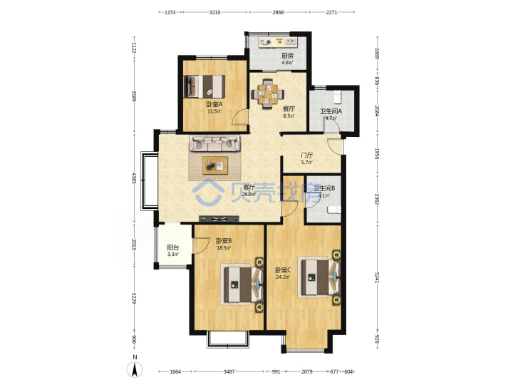 青岛二手房 > 崂山区 > 恩马文景园(海尔路银川东路)146.19平中楼层376万双南一北西厅套三双厅双卫