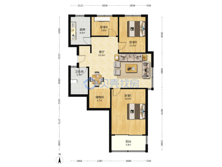 青岛二手房 > 市北区 > 新岭花园三期(海信海安新居辽阳西路辽源路错埠岭二路)116.43平高楼层238万南北东厅套三厅