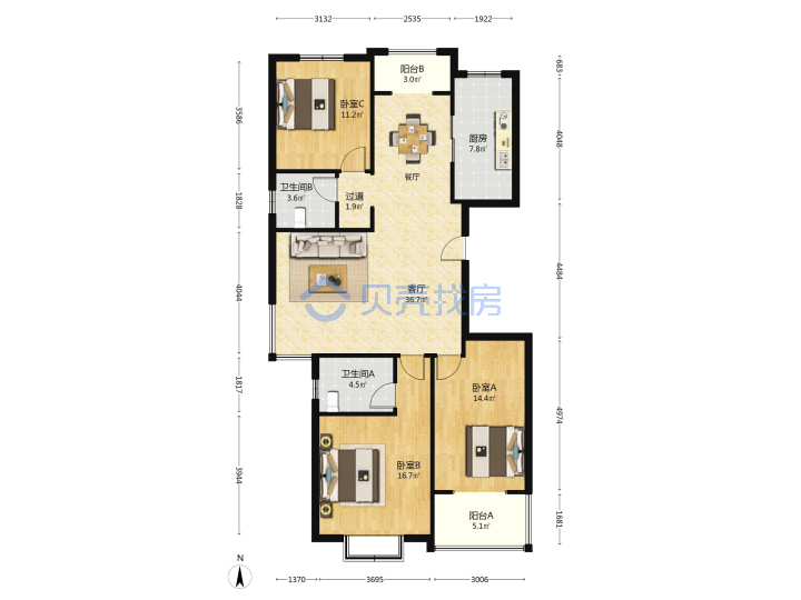 青岛二手房 > 市北区 > 香山美墅(银川西路劲122号松一路劲松三路同安路)143.89平中楼层480万双南一北西厅套三双厅双卫