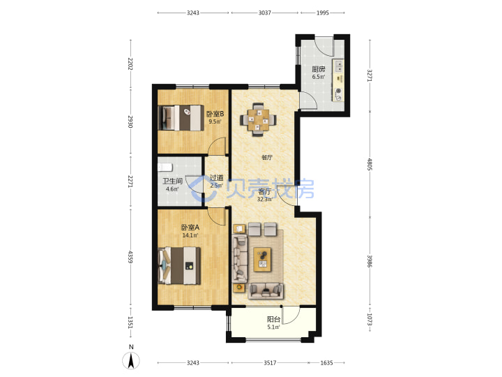 海信都市果岭(辽阳东路松岭路)108.1平低楼层240万南北南厅套二双厅 农贸市场,医院,学校,超市,公园,有院,储室,停车场