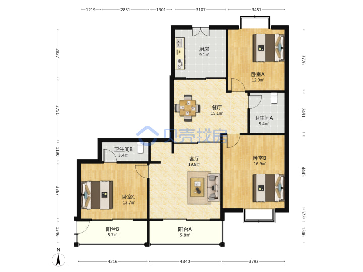 青岛二手房 > 市北区 > 海青家园(同德路哈尔滨路宁安路)136.35平低楼层180万双南一北南厅套三双厅双卫