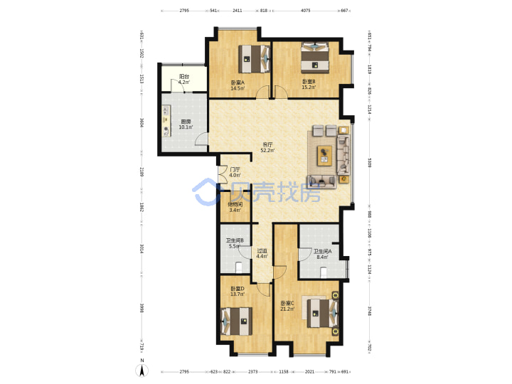 青岛二手房 > 市南区 > 华润中心悦府华润悦府(万象城山东路江西路闽江路香港中路)234.07平中楼层1220万双南1北1东东厅4-2-2