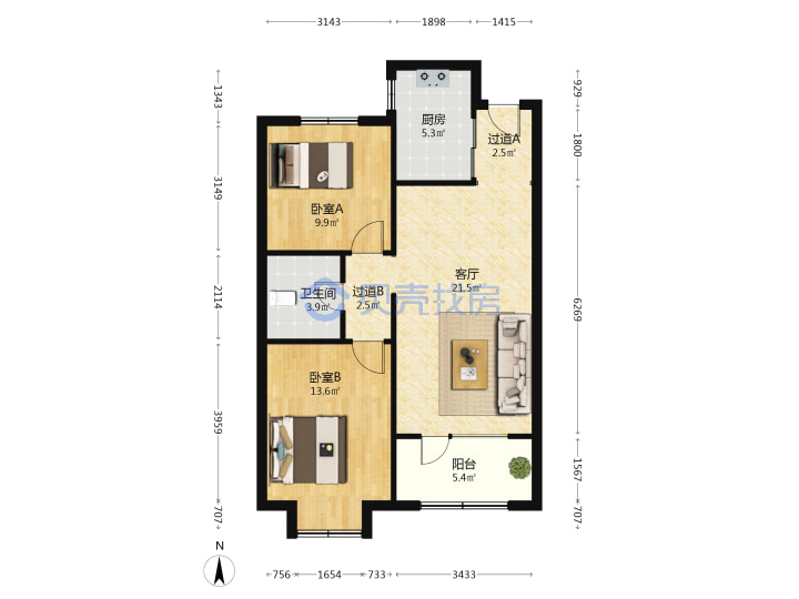 青岛二手房 > 崂山区 > 金地悦峰(同兴路同安路劲松七路劲松五路)86.63平高楼层235万南北南厅套二双厅