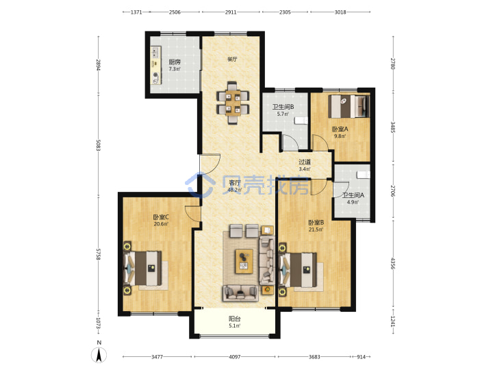 青岛二手房 > 崂山区 > 海信依云小镇罗曼(石湾一路姜哥庄路崂山路)166.62平高楼层1050万带车位双南一北南厅3室2厅2卫