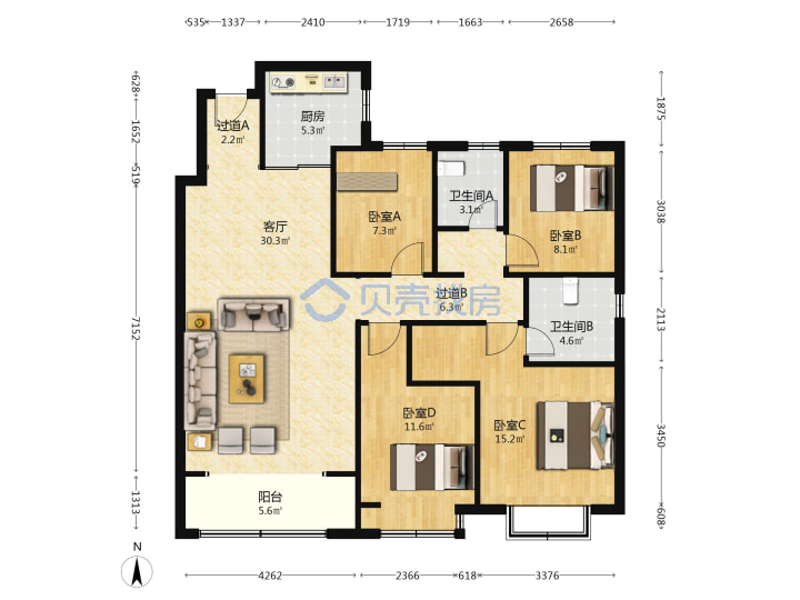 青岛二手房 > 市北区 > 大云谷崂山金茂府东区(劲松五路滁州路劲松七路)140.97平低楼层530万双南双北南厅套四双厅双卫
