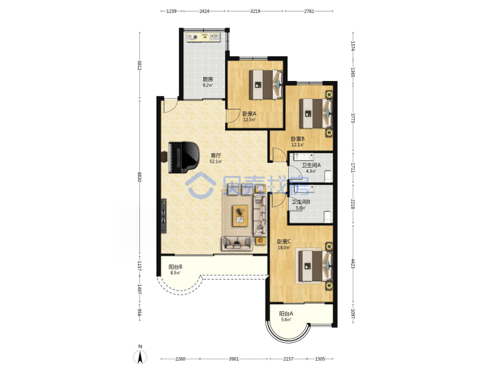 青岛二手房 > 市南区 > 如意花园(澳门路珠海支路)143.7平中楼层408万1南2北南厅套三双厅双卫
