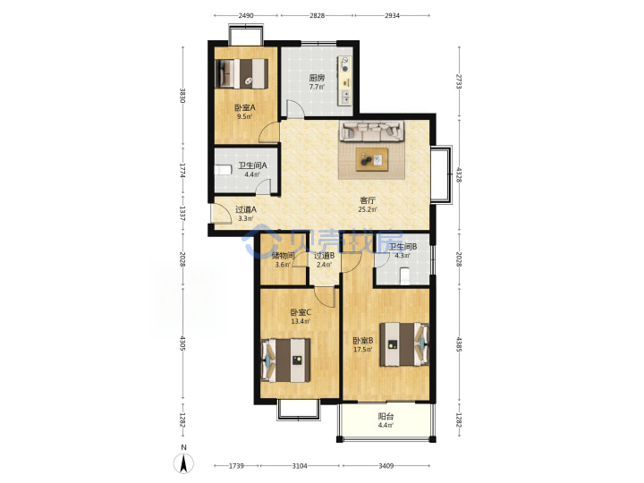 青岛二手房 > 崂山区 > 温哥华花园(海尔路辽阳东路)128.72平高楼层248万双南一北东厅套三双厅双卫