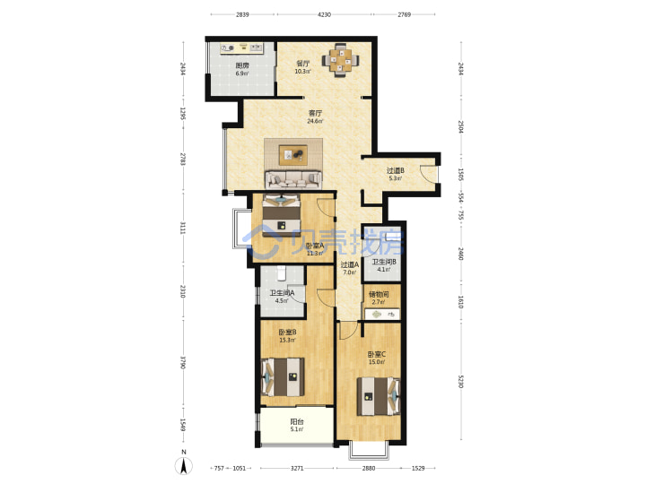 青岛二手房 > 市北区 > 良辰美景二期住宅楼(敦化路徐州路)157.22平高楼层425万双南一西西厅套三双厅双卫