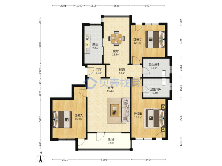 青岛二手房 > 崂山区 > 鲁信长春花园(辽阳东路劲松七路同安路)140.8平低楼层430万双南一北南厅套三双厅双卫