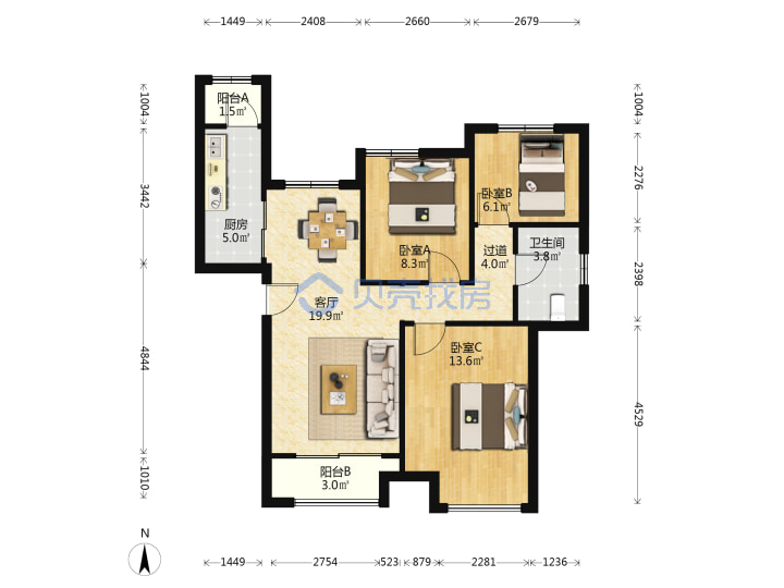 青岛二手房 > 市北区 > 中海清江华府(淮安路清江路重庆南路哈尔滨路)91.3平中楼层249万1南2北南厅套三厅