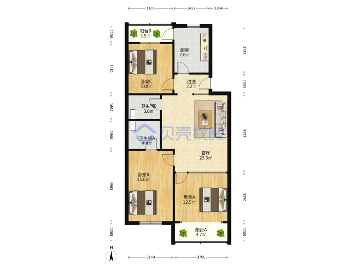 青岛二手房 > 市北区 > 青岛山公寓(登州路延安路大连路)108.31平中楼层296万双南一北套三双厅双卫