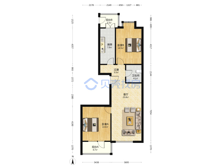 青岛二手房 > 崂山区 > 东岳海花园(深圳路香岭路石岭路海尔路)109.69平中楼层268万南北南厅套二双厅