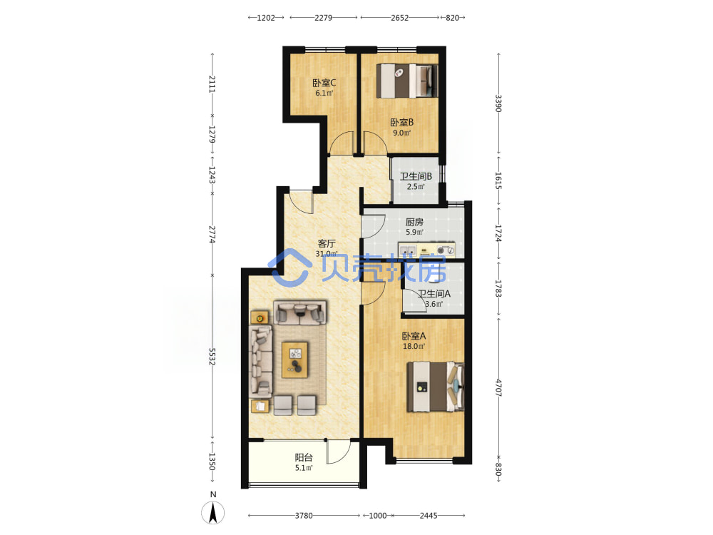 青岛二手房 > 市北区 > 碧桂园云著(抚顺路鞍山二路鞍山三路南宁路)112.18平中楼层电梯洋房265万1南2北南厅套三双厅双卫