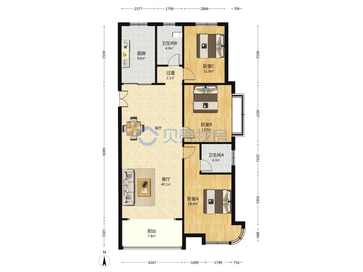 青岛二手房 > 崂山区 > 山水名园三期(香港东路银川东路)150.77平中楼层458万带车位南北南厅套三双厅双卫