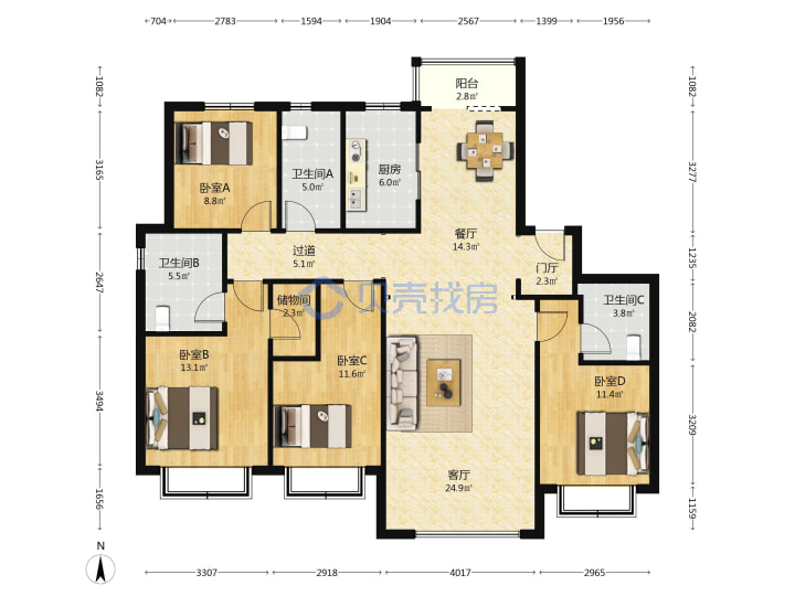 青岛二手房 > 市北区 > 和达君玥(黑龙江南路长沙路保张路)158.76平高楼层489万三南一北南厅套四双厅三卫
