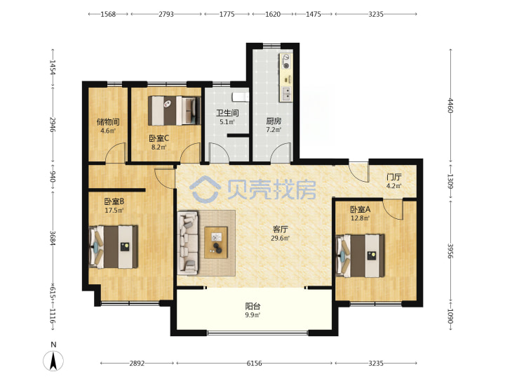 青岛二手房 > 市北区 > 保利大国璟(宁安路同德路滁州路)133.12平低楼层455万双南一北南厅套三双厅双卫