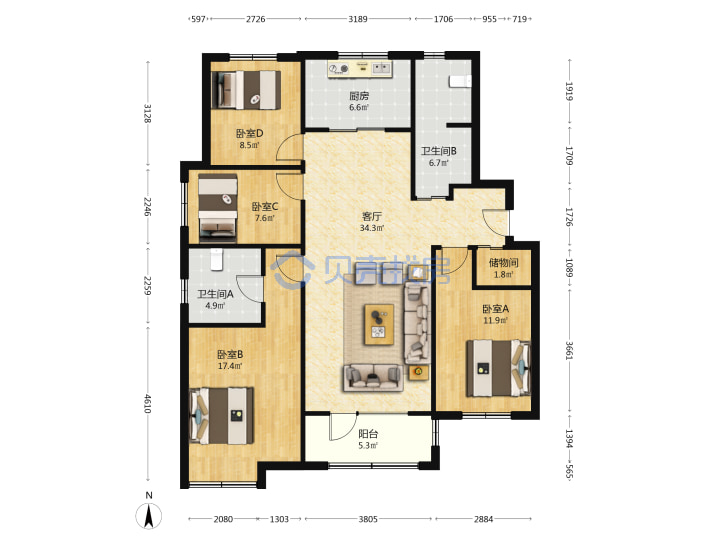 青岛二手房 > 市北区 > 万科未来城(四流南路方城路唐河路大沙支路开封路)141.73平低楼层291万双南一北南厅套四双厅双卫