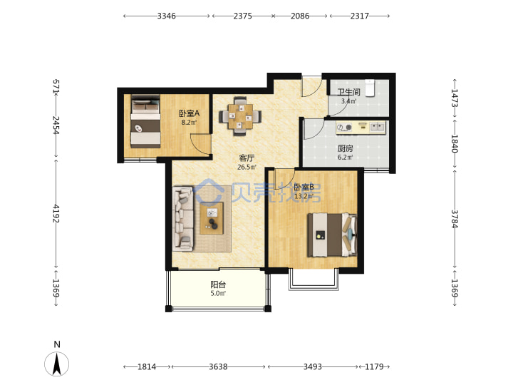 青岛二手房 > 市北区 > 枕海山庄(同安路同福路辽阳西路)86.92平高楼层196万双南南厅套二双厅