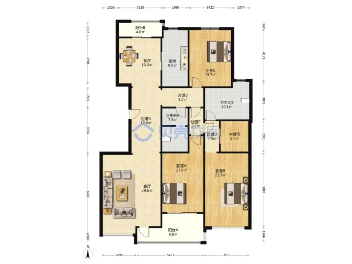 青岛二手房 > 崂山区 > 恒基新天地(香港东路仙霞岭路)205.54平高楼层电梯小高960万双南一北南厅套三双厅双卫