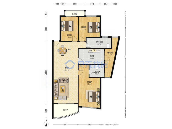 青岛二手房 > 崂山区 > 天泰馥香谷一期(香港东路海安路梅岭西路)135.33平中楼层430万1南2北南厅套三双厅双卫