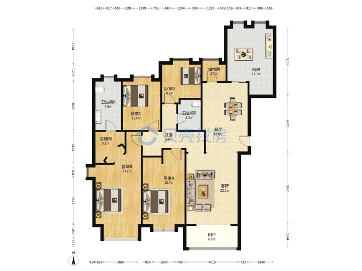 青岛二手房 > 崂山区 > 海信天玺(东海东路东海路麦岛路)222.48平高楼层1330万双南双北南厅套四双厅双卫