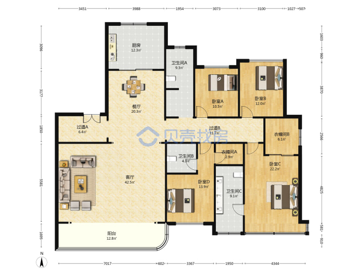 青岛二手房 > 崂山区 > 海尔翡翠云城云尚(松岭路东川路)237.52平中楼层698万双南双北南厅套四双厅三卫