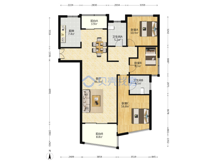 青岛二手房 > 市南区 > 海信都市华彩(宁夏路福州北路福州南路)149.85平中楼层278万南北南厅套三双厅双卫