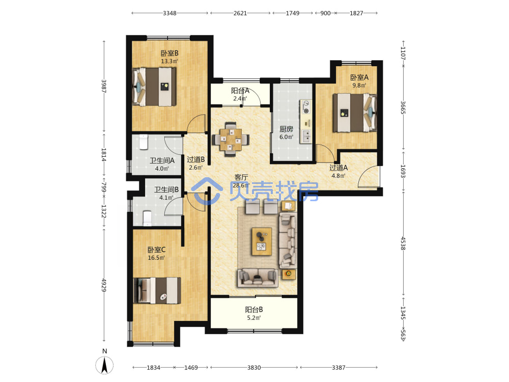 青岛二手房 > 市北区 > 万科蓝山一期(伊春路东胜路哈尔滨路)126.73平中楼层368万1南2北南厅套三双厅双卫