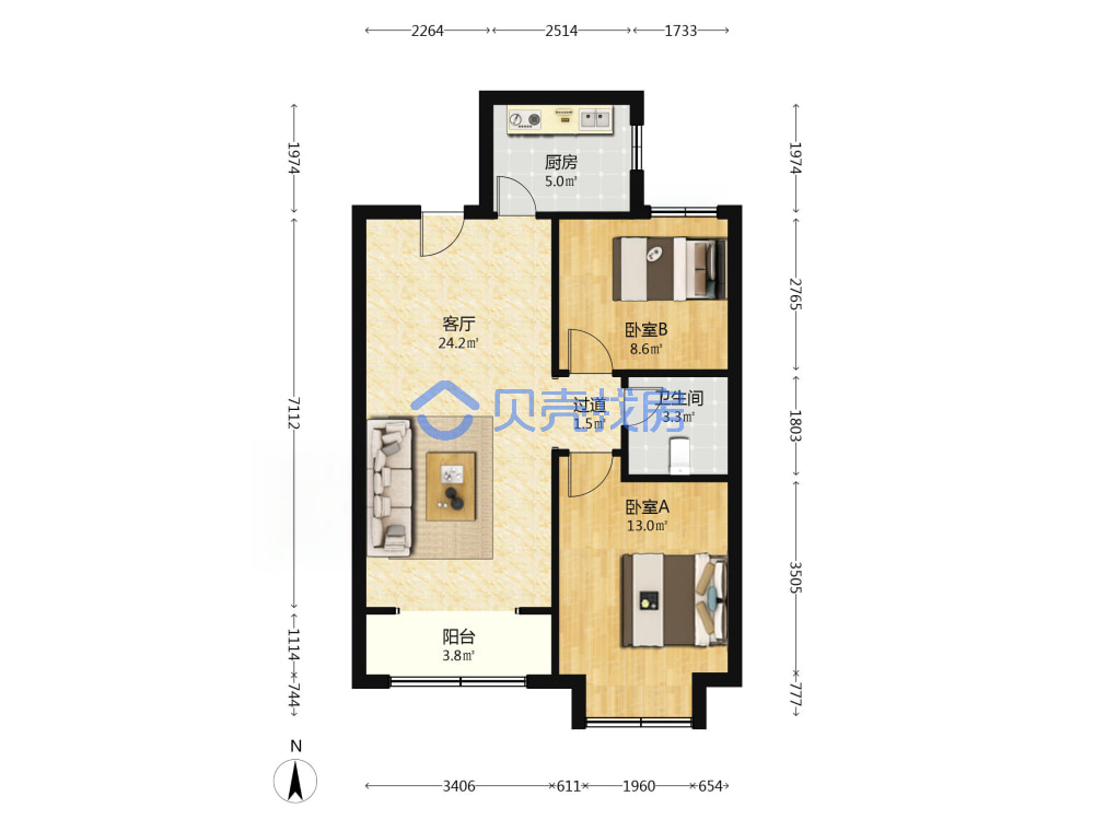 远洋自然(辽阳东路劲松路同兴路)87.11平中楼层178万南北南厅套二双厅 农贸市场,医院,学校,超市,公园,有院,停车场