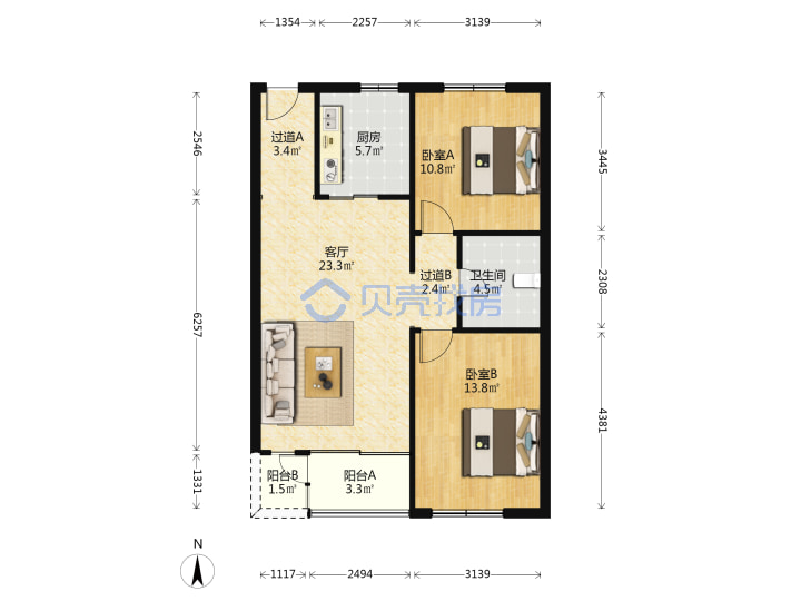 青岛二手房 > 崂山区 > 海尔东城国际北区(辽阳东路海尔路劲松七路劲松八路)93.03平中楼层210万南北南厅套二双厅