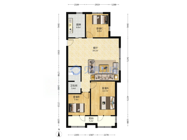 青岛二手房 > 市北区 > 万科未来城(开封路大沙支路方城路)113.9平低楼层240万双南一北东厅套三双厅