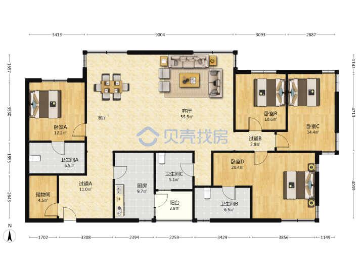 青岛二手房 > 崂山区 > 东盛花园(辽阳东路劲松七路)90.98平中楼层129万双南套二厅