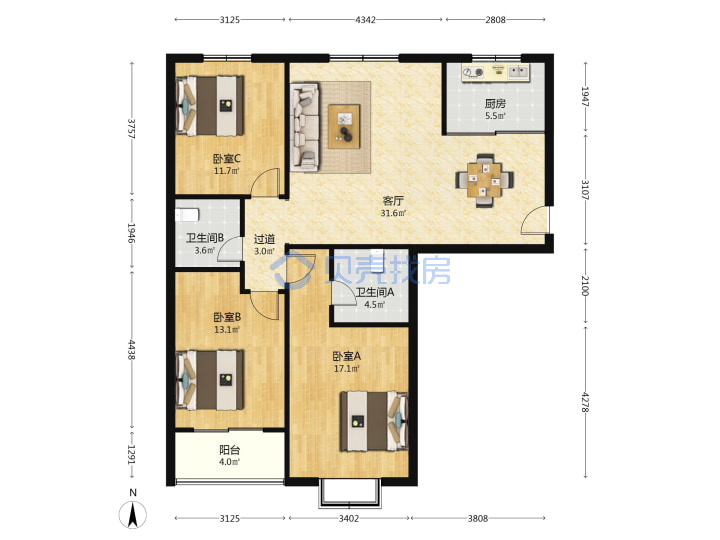青岛二手房 > 崂山区 > 温哥华花园(辽阳东路海尔路)125.05平高楼层260万双南一北北厅套三双厅双卫